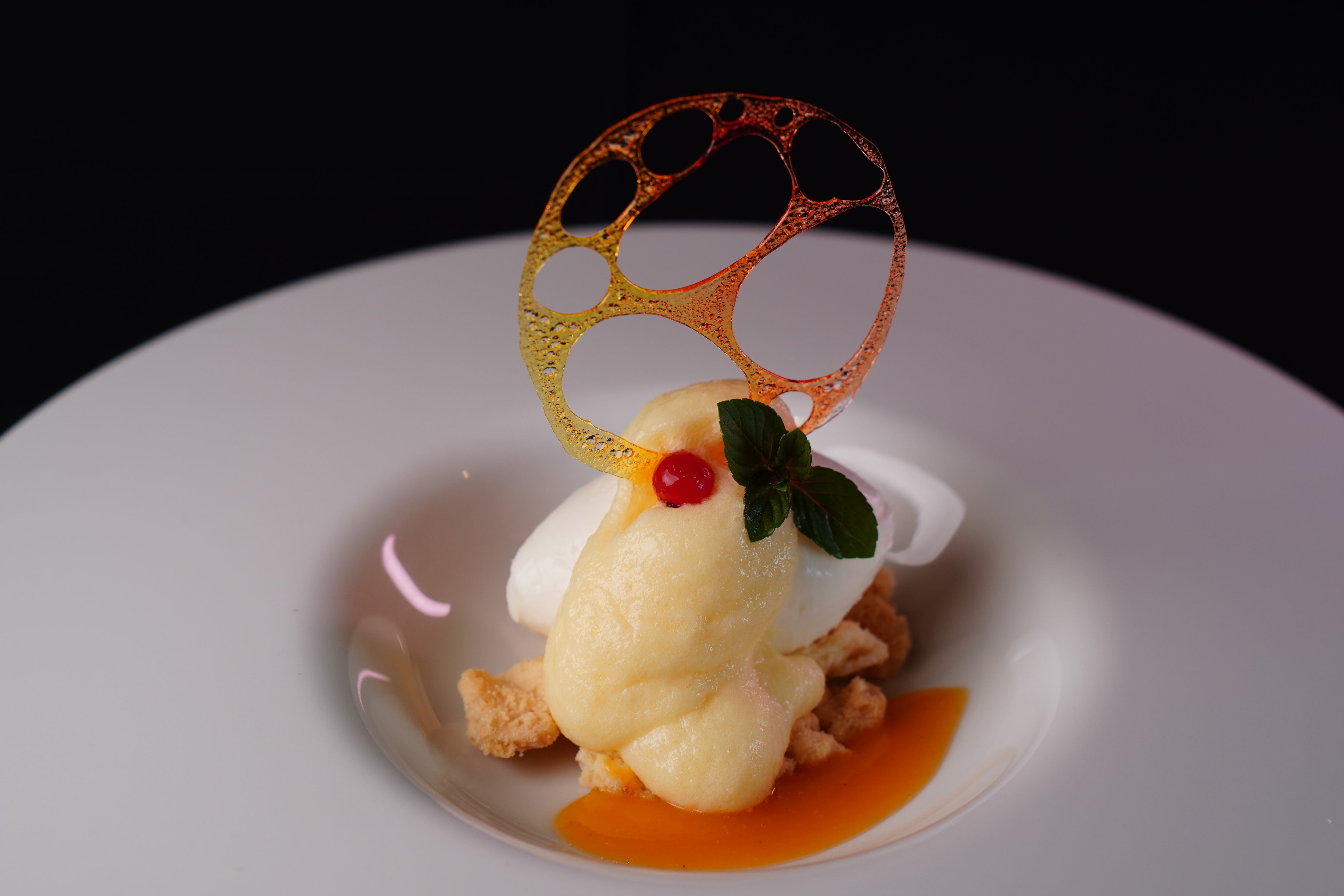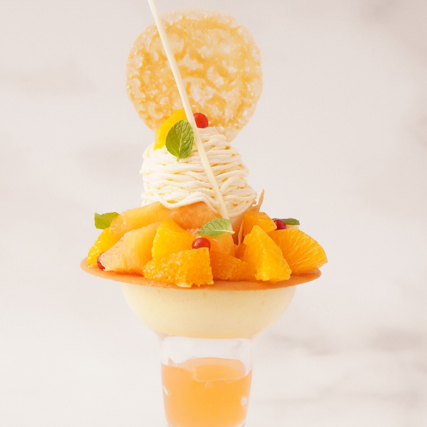 口に入れた瞬間に消えるような儚いテクスチャーは、オレンジの華やかなアロマをふわりと引き立て、最後の一口まで重さを感じさせない“美しい余韻”へと変化させます。