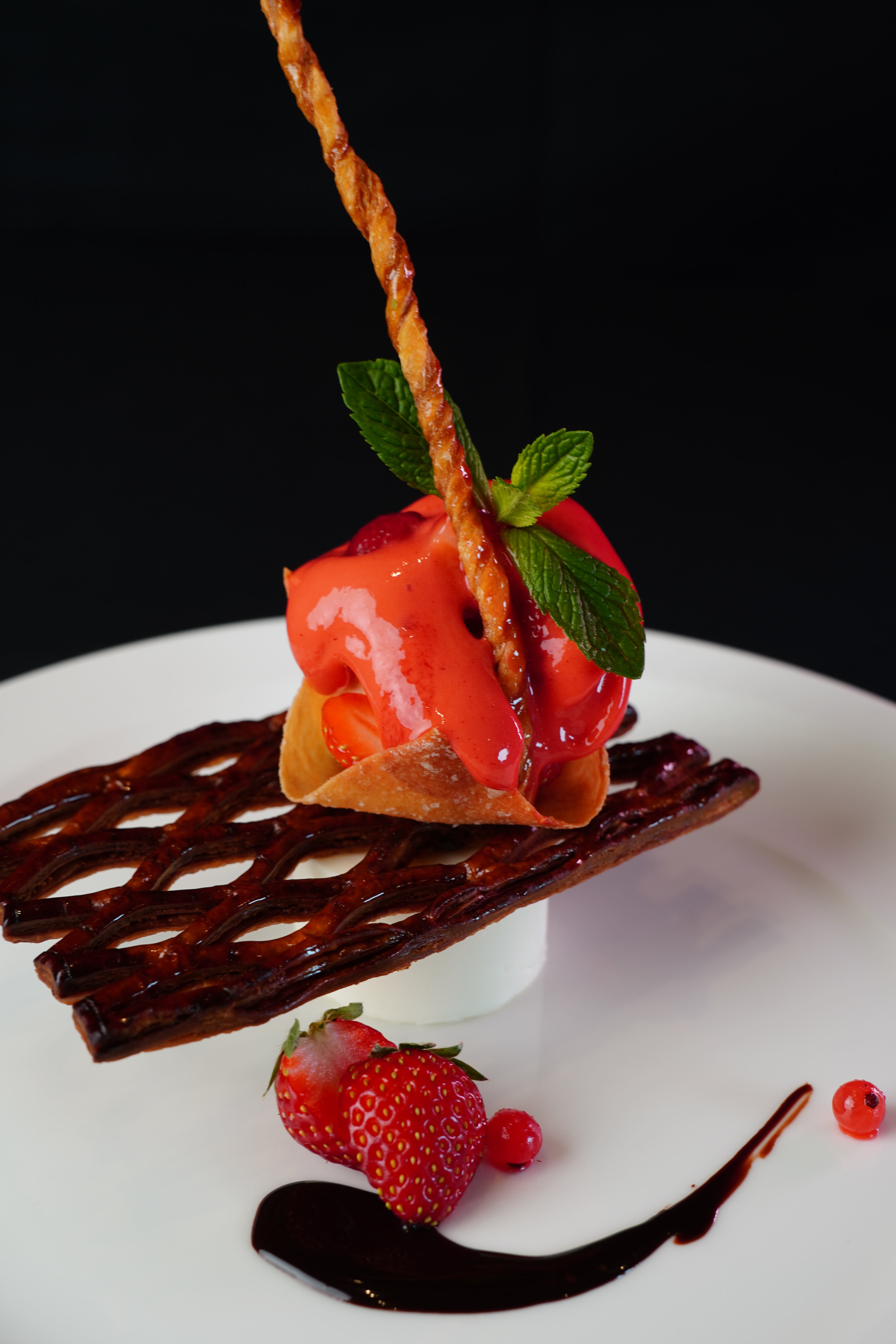 ラズベリー特有の、華やかで鮮烈なベリーアロマと、きゅっと引き締まる酸味のニュアンスを丁寧に引き出し、軽やかで洗練された仕上がりに仕立てました。軽い口当たりの中で香りがふわりと立ち上がり、皿全体の輪郭を明るく整えながら、余韻に心地よいベリーの印象を残します。